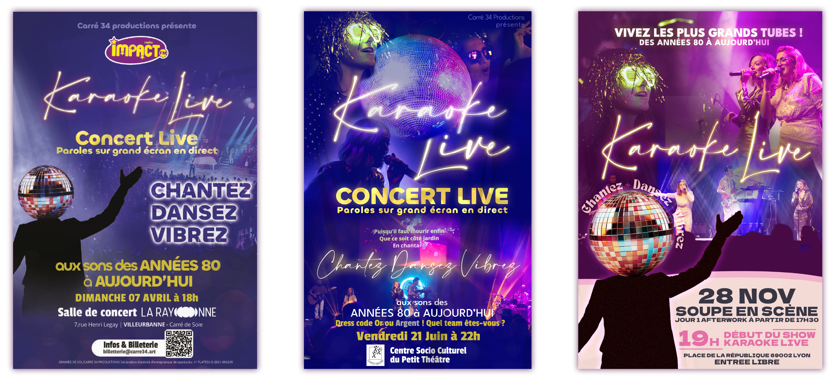 L'identité graphique de Karaoke Live reflète l'énergie et la convivialité de ce spectacle haut en couleur. Avec des visuels dynamiques et lumineux, elle capte l'ambiance festive d'un groupe live qui revisite les grands tubes des années 80 à aujourd'hui. La palette de couleurs vives et les éléments graphiques évoquent à la fois la nostalgie des classiques et l'excitation d'un concert moderne.